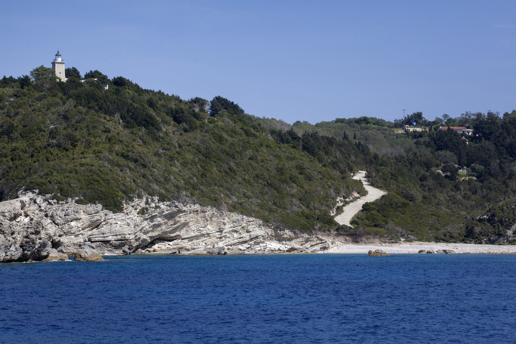 The beach of Planos (or Plani) lies on the northwest coast of Paxos, under the lighthouse.